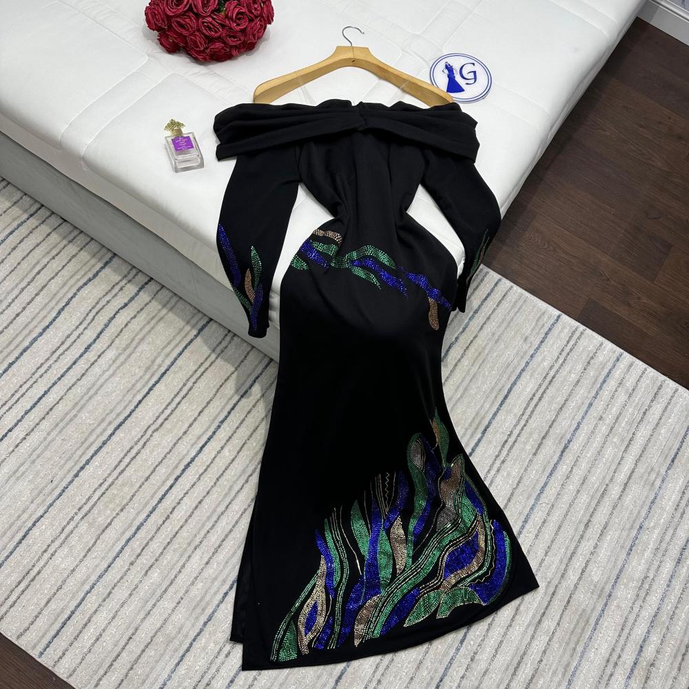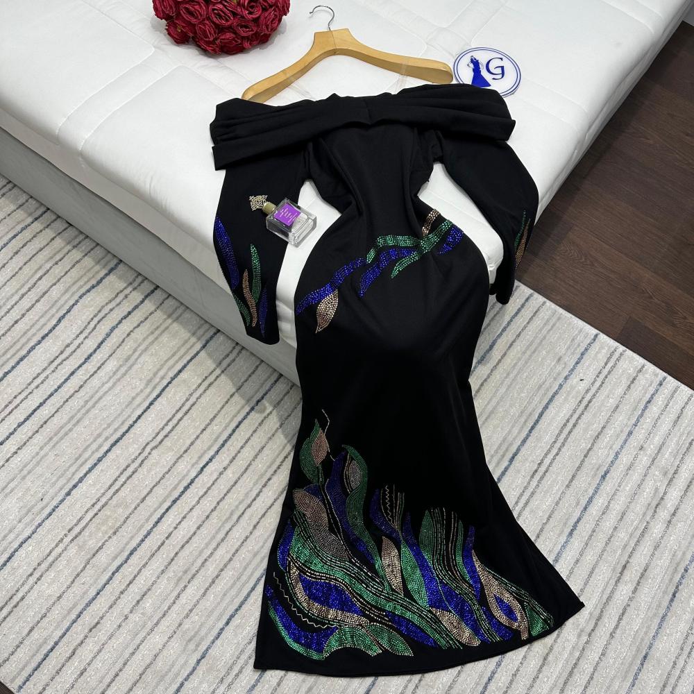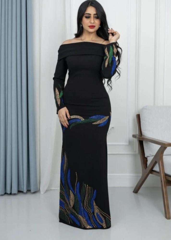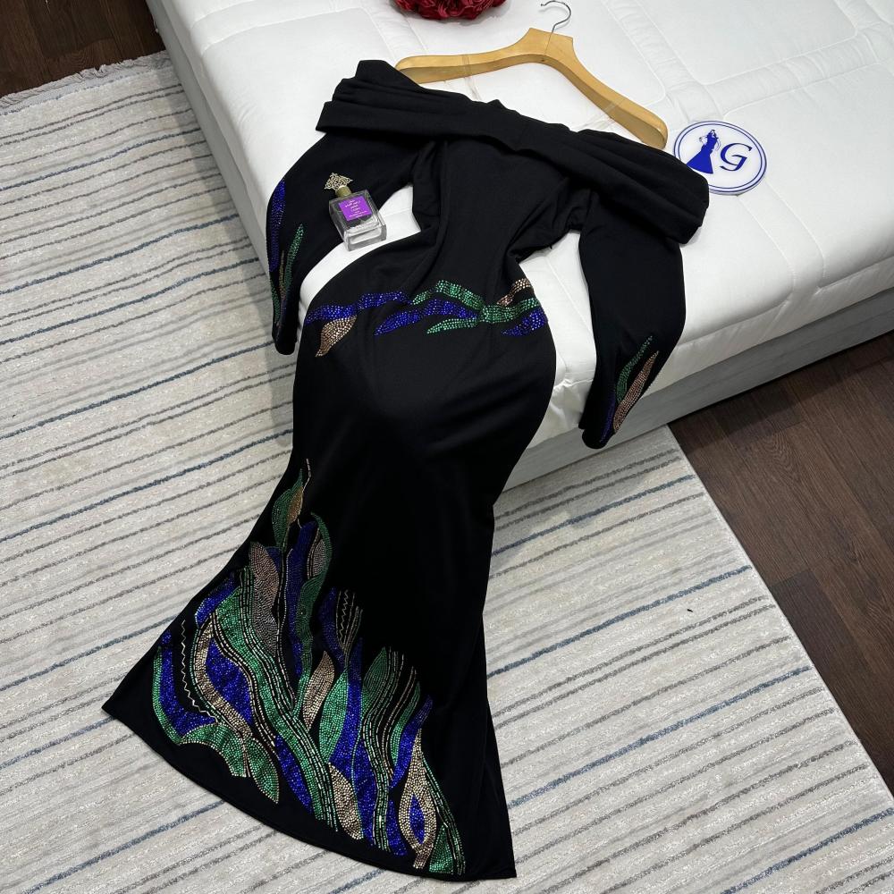 الخامه. كريب استرتش+ فصوص على خرز مطرز على نفس القماش