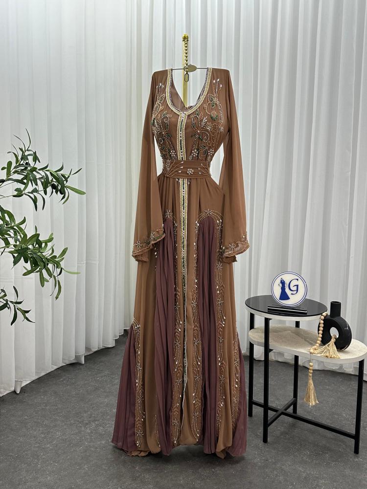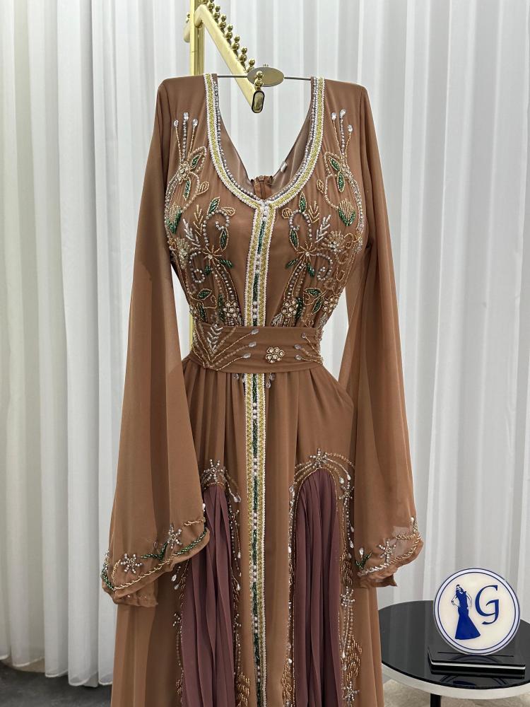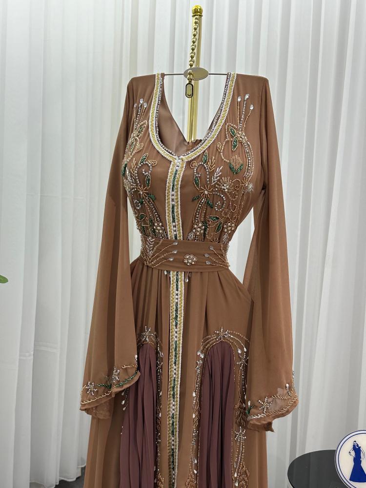 الخامه. شيفون جورجت من الأسفل بلنسيه + تطريز يدوي علا نفس القماش