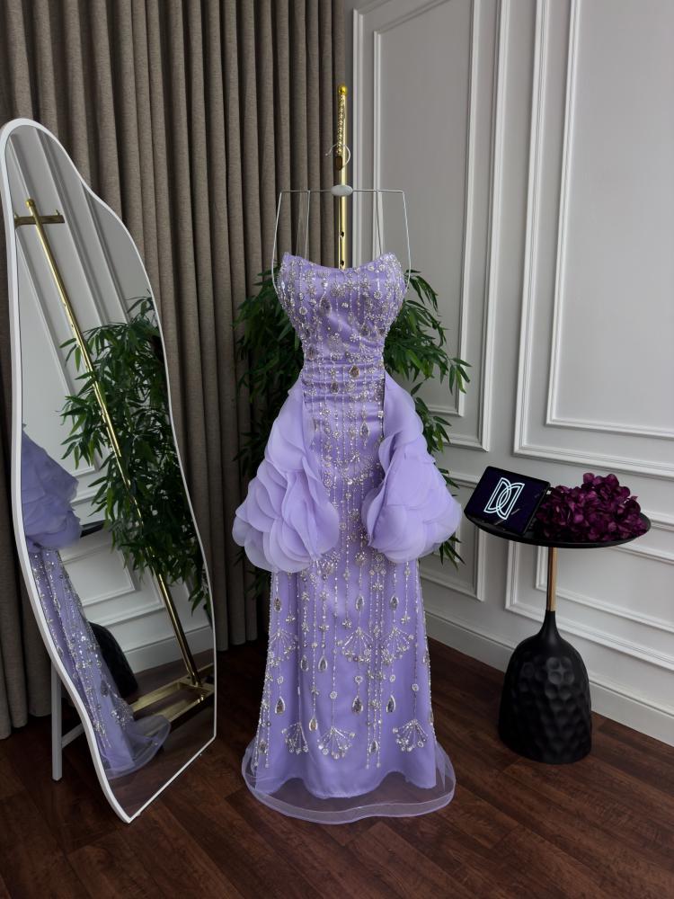 فستان سهره كلفه تل تطريز خرز وجاكيت اورجنزا ليزر
